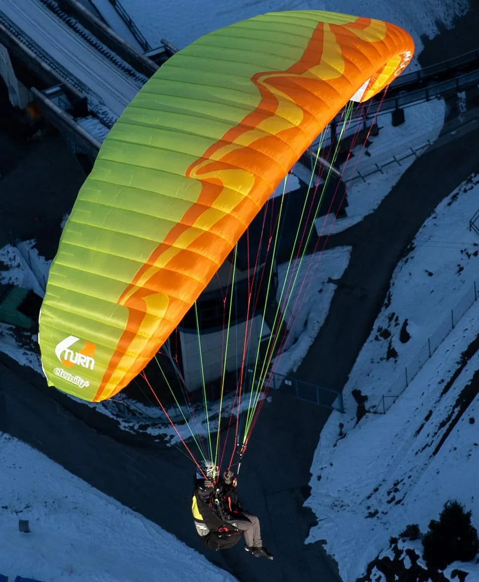Der ETERNITY 4 ist ein performanter A-Klasse Flügel, der erneut ein Statement für die Zukunft setzt. Geblieben sind die gutmütigen Reaktionen in Extremflugmanövern. Bereits in der Vergangenheit begeisterte das Konzept tausende von Piloten weltweit. Sein ohnehin sportliches Handling konnte nochmals gesteigert werden und bietet gleichzeitig mehr Laufruhe. Das Konzept ist auf Leistung getrimmt, so beißt sich der Flügel auch an schwacher Thermik fest und zieht intuitiv ins Zentrum. Beim Drehen setzt der ETERNITY 4 Steuerimpulse präzise um und verwandelt Thermik sehr gut in Höhe. Profilmodifikationen haben dem Flügel zu deutlich mehr Geschwindigkeit verholfen und die Gleiteigenschaften verstärkt. Gebaut für fliegerisches Wachstum hält der moderne HighTech Flügel alles bereit was sich das Fliegerherz von der neusten Generation A-Klasse erwarten darf. Ein perfekter Allrounder und Begleiter für jede Flugreise und jedes Flugabenteuer. Die jüngsten technischen Errungenschaften in höchster Verarbeitungsqualität sorgen für hohen Wertebestand. Hauchdünne Titan-Legierungen aus dem Wettkampf, halten die Eintrittsöffnung bereits am Boden auf Spannung und verleihen der leichten Kappe beste Starteigenschaften. Diese steigt zuverlässig und ohne Tendenzen des Überschießens in den Zenit. Was auch beim Groundhandling sehr deutlich zum Tragen kommt.