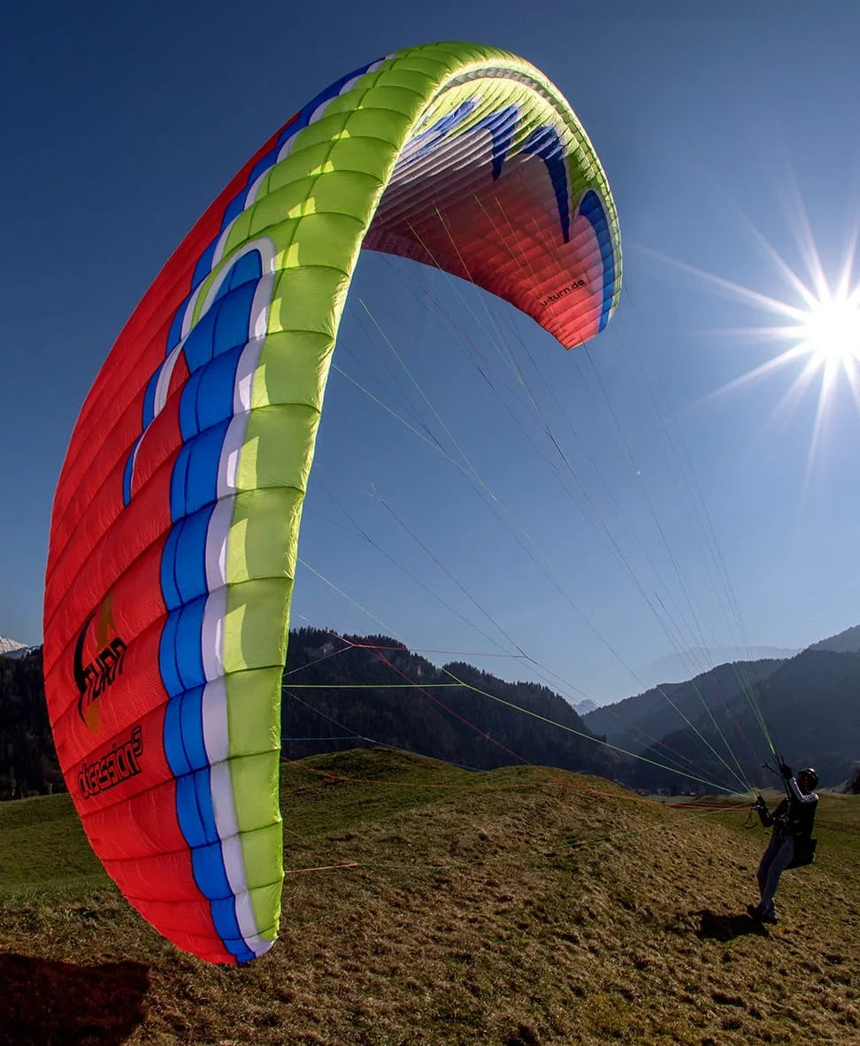 Der moderne Streckenflügel mit optimiertem Leistungsgewicht bringt kompromisslose Gleitpower mit Lowend-B Entspannung auf die Strecke. Mit besessener Steigfreude dreht der alltagstaugliche Leicht-Flügel selbst in schwacher Thermik unablässig an die Basis und durchschneidet turbulente Luftmassen kultiviert ruhig. Der OBSESSION 5 bietet hohe passive Sicherheit mit sportlich direktem Handling. Sein ausgewogenes Gleichgewicht zwischen Sicherheit, Leistung und Leichtigkeit, machen den OBSESSION zu einem Allround-Geheimtipp für grenzenlose Abenteuer.